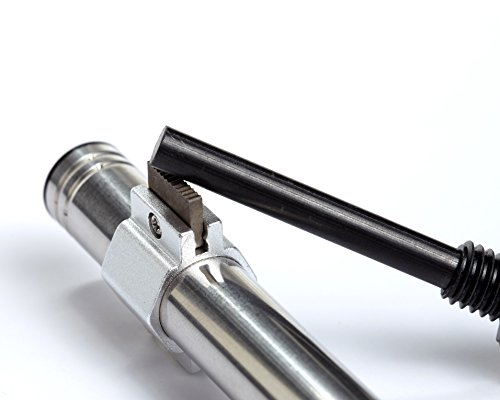 ファイヤースターターとは基本的に火打ち石の役目をするもので、火花を散らせて簡単に着火できるようにするギアです。このバーゴのアルティメットファイヤースターターは火打ち石の役目と棒状の形状からファイヤーブラスターいわゆる火吹き棒の役目も担っています。上部の黒いキャップがスクリューになっていて、外すとマグネシウムの棒が出てきます。