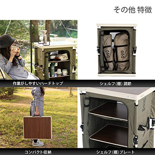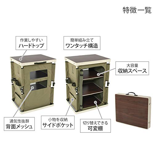 ドッペルギャンガーのアイテムはカラフルで可愛いものが多いのが特徴、おしゃれなブランドです。ライトに楽しみたい方にはちょうど良いブランドだと思います。このマルチキッチンテーブルは2~3人程度のキャンプにはちょうど良いサイズ。食器類を収納するだけでなく、テント内の収納家具としても活躍してくれるマルチな1台です。