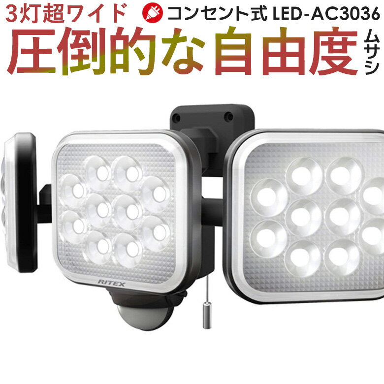 おすすめ人感センサーライト.2 ムサシ RITEX フリーアーム式LEDセンサーライト(12W×3灯) LED-AC3036