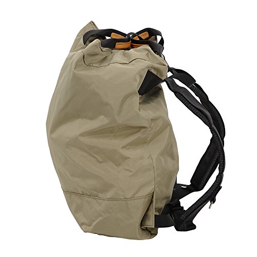 開口部分のデザインが印象的なフレンドリックパッカーズの2WAYバックパックです。 手持ちバッグとバックパック2通りの使い方ができる便利なアイテムです。 開口部分はロールトップにもなり、開閉は使い勝手の良い巾着仕様。 収納する荷物の量に応じてアレンジが可能なので突然の大荷物にも安心です。 素材に採用しているパッククロスナイロンは、防水性はコーデュラナイロンと比べ高くはないですが、違う発色の良さと軽さも魅力の一つです。