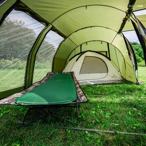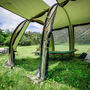 こちらの大型テントのおすすめポイントは、インナーテントを吊り下げる形になっているという点です。タープを使用しなくても十分広く、寝室とリビングを分けることも可能。メッシュ素材が備わっているので、虫よけとしての使用もできます。