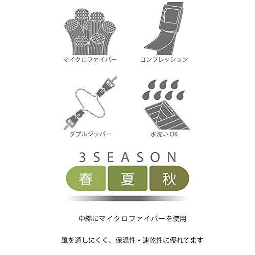 BDK-36LGは、マイクロファイバーが使用されたシュラフです。マイクロファイバーはとても触り心地がよく、快適な睡眠を促してくれます。ダブルジッパーを採用しているので、どちらからでもファスナーを閉められるのがポイント。