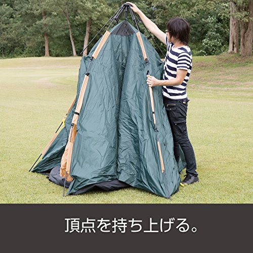 BDK-75TCSBは、1人用のワンポールテントです。ワンポールなので形状はピラミッドのようになっており、ちょっとした日よけとしても利用できます。スカート巻き上げ式で、フルクローズでプライベートを確保することも可能。