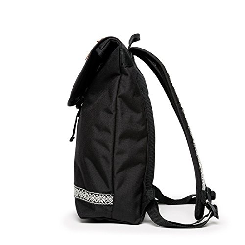 独特な図柄のチロリアンテープのアクセントが特徴的なリュックです。チロリアンテープは、ショルダー部分にも施されていて女子のファッションにも合わせやすいアイテムです。メインコンパートメントには仕切りが施されているので、使い勝手の良いリュクだといえるでしょう。丸型のフラップが柔らかいイメージを与えてくれますね。