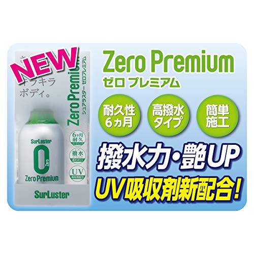 新しく開発されたガラス系特殊シリコーンにより、ツヤの効果とコーティングの耐久性があがったゼロプレミアム。使い方は、車のボディまたはクロスに直接スプレーして吹き上げるだけ。耐久性は強力な耐久性被膜により、6ヶ月にわたり持続。推奨使用頻度は3ヶ月ごとがおすすめ。