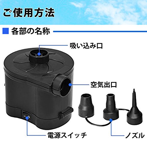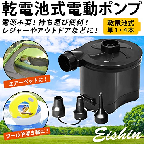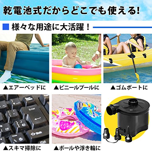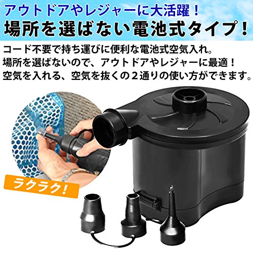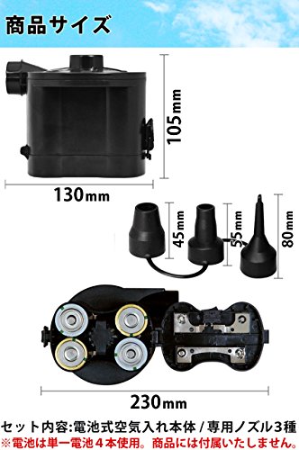 【サイズ】130mm X 105mm 【使用電池】単一乾電池×4本使用(別売) 【連続使用時間】空気を入れる場合10分、空気を抜く場合5分