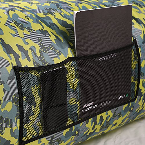 撥水性に優れた素材を使用しているので海でも充分使用できます。外部のナイロン記事と内部のPVCによって耐久性も満足のいくエアソファーです。2~3人なら難なく座ることができ、耐荷重は150~200kgまで耐えられます。空気の入れ方も簡単で、本体も軽量だから女性にも使いやすいといえるでしょう。本体の側面にメッシュのポケットがついていて、携帯や小物などを入れておくのに便利です。