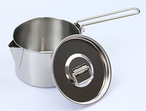 ツーリングのお供として人気の一品、袋ラーメンを一人分作るのにちょうどよいサイズ感です。しっかりとステンレス製なので、直火もOK、取っ手は鍋側に折り畳めるのでコンパクトに収納できます。