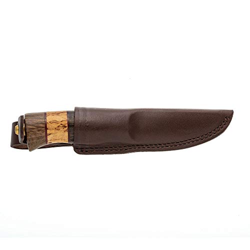 全長:161mm 刃長:69mm 刃厚:2.8mm, 刃材:トリプルラミネートステンレススチール ハンドル材:ナラ材・白樺材・本革 重量:ナイフ重量60g 付属品:レザー(本革)