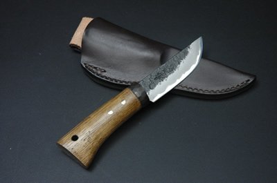 全長:165mm 刃長:75mm 刃厚:3mm 刃材:白鋼(カーボンスチール) ハンドル材:樫 付属品:革シース