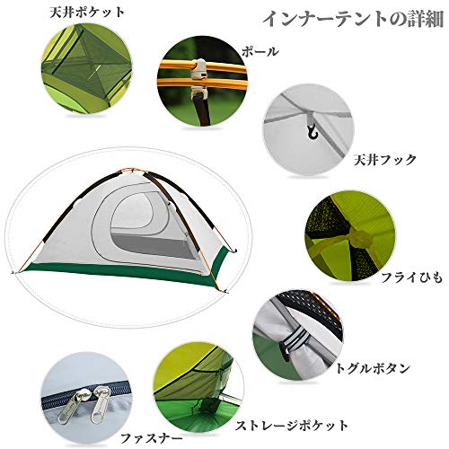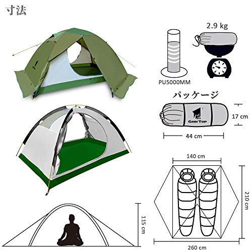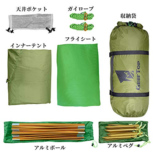 GEERTOPの2人用テントになります。初心者の方でも1人でも素早く設営ができると評判です。何といってもこのブランドの良いところは値段がとてもお手頃で他と比較しても一目瞭然。なるべく節約したい方にはおすすめできます。安すぎるので逆に心配という声もありますが。
