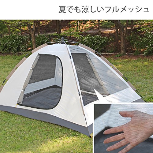 こちらもファミリーサイズのワンタッチテントです。2箇所についたD型の出入り口は、ストレスなくテントの出入りができます。 フルメッシュ加工のインナーテントは、夏には独立して単体で使うこともでき、憩いの場所としても使えます。