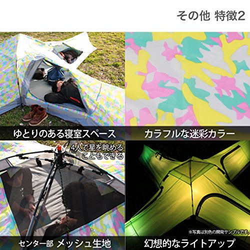 ビッグサイズなのに5分で設営できるワンタッチ2ルームテントです。裾にスカート付きの4シーズン対応、全面にフルメッシュ加工された設計は夏でも快適です。 しかもテント床面積が約13畳、家族や友人とのキャンプが楽しく過ごせます。