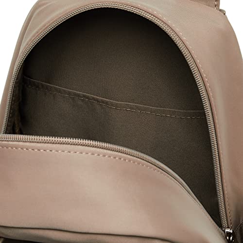 ポリエステルのさらっとした触感の生地を使用したシンプルなデザインのリュック。色合いが落ち着いているので、タウンユースにも違和感がありません。