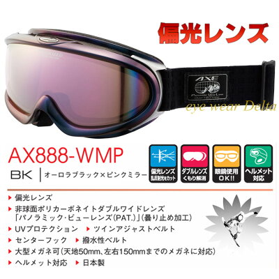 これは、スノーボードは原理的に横向きに滑るので、横方向に広い視界が必要だが、スキーは前を向いて滑るので、それほどでもない。という使われ方の違いによるものです。