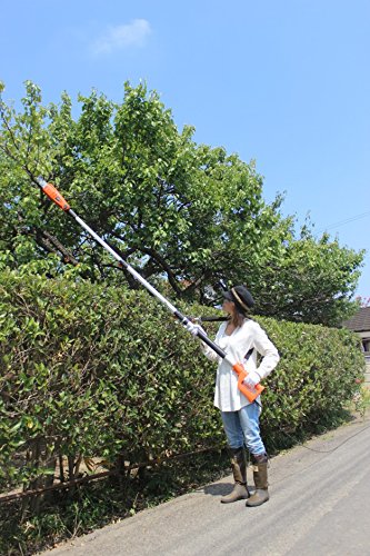 こちらの電動高枝切鋏は、高い位置にある木の枝を容易に切れて、充電式のコードレス電動高枝切鋏なので電源がない環境でも使用できますので便利に使うことができます。スイッチを押すと、力の弱い女性でも楽々枝を切断する事ができますのでおすすめです。簡単に剪定作業を行う事が出来るとして人気の商品です。