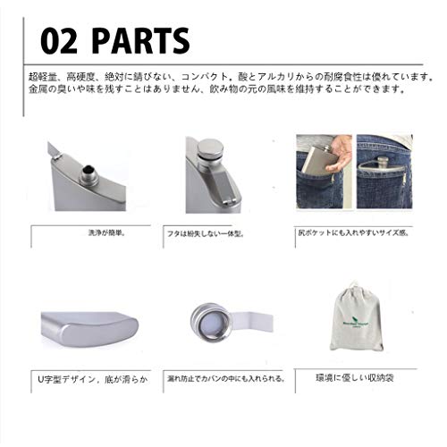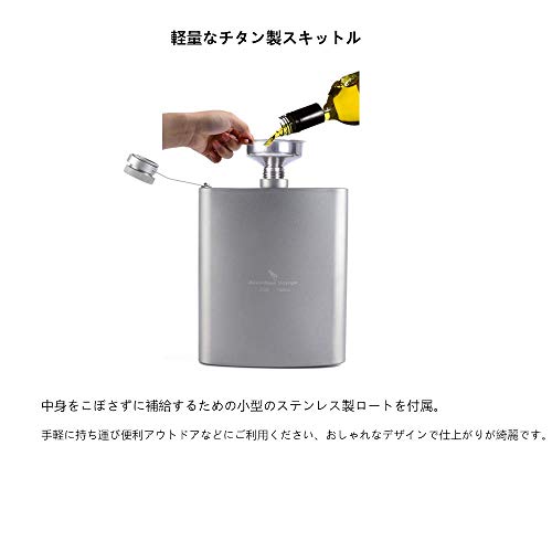 こちらのスキットルには、99.99%チタンを活用しています。チタンを活用していますので超軽量かつ高密度で、錆びることがなく長く愛用する事が出来る仕様となっています。またコンパクトで持ち運びにも便利です。ポケットサイズなのでアウトドアシーンへの持ち運びもストレスなく気軽です。