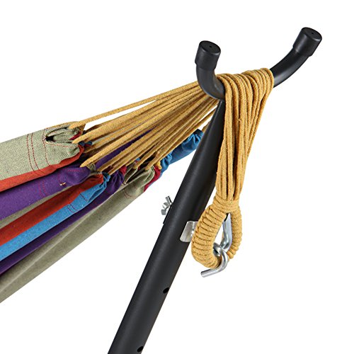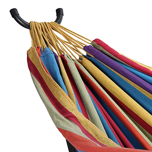 ・ハンモックの布材質: 綿100% ・ハンモックのベッドサイズ: 約160×239cm 長さ330cm ・耐荷重: 約200kg ・重さ: 約16kg ・ハンモックの設置スペース: 長さ:約300cm、幅:約120cm、高さ:約115cm