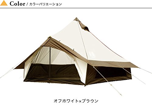■重 量 / 総重量(付属品除く):14.7kg[内 容]フライ:約9.3kg、グランドシート:約1.8kg、ポール:約3.6kg ■素 材 / ・フライ:T/C(耐水圧350mm)、ポリエステル210d(耐水圧1,800mm) ・グランドシート:ポリエステル210d(耐水圧1,800mm) ・メインポール:スチールφ32mm、フロントポール(Aフレーム):アルミφ22mm ■収 納 / 80×35×33cm ■カラー / オフホワイト×ダークブラウン ■付 属 / 張り綱、アイアンハンマー、スチールピン、収納袋 ■カートン入数:1