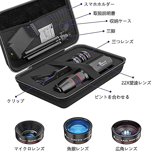 こちらのセルカレンズは20層コーティング製法で作成されているため、遠方の景色でも鮮やかで高画質な撮影が可能となっています。取り付けもクリップで簡単。初心者の方でも手軽に写真撮影が楽しめるでしょう。