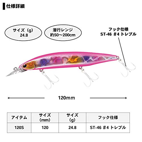 サイズ(mm):120 自重(g):24.8 フック仕様:ST-46 #4 トレブル シンキング ローリングアクション