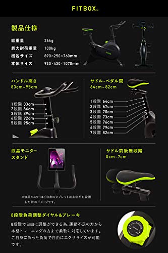 このFITBOXのスピンバイクには、様々な体格に対応したサイズ設計と負荷システムが組み見込まれており、自分の身体にフィットした効率的なトレーニングが可能です。