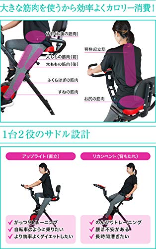 自転車のような直立式と、背もたれにもたれる乗り方の2種類のトレーニングができる、負荷も16段階調整できるなど利便性が抜群です。さらにマグネット負荷方式を採用しているため、摩擦音がなく静かにトレーニングを行えます。