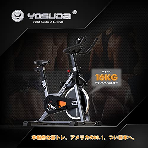 続いては、YOSUDAが販売しているスピンバイクです。こちらは、アメリカ版アマゾンで長期的に人気があるモデルを日本人向けに改良した最新機種。本格的なレーニングに適しており、ホイールの重量はなんと16kgです。