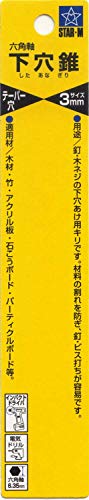出典: https://www.amazon.co.jp/%E5%A4%A7%E8%A5%BF%E5%B7%A5%E6%A5%AD-4957934080409-%E3%83%8F%E3%82%A4%E3%82%B9%E4%B8%8B%E7%A9%B4%E9%8C%90%EF%BC%88%EF%BC%AE%EF%BC%AF%EF%BC%8E%EF%BC%92%EF%BC%91%EF%BC%89-4mm/dp/B001VB4RBK/ref=sr_1_14?ie=UTF8&qid=1519199202&sr=8-14&keywords=%E4%B8%8B%E7%A9%B4%E3%80%80%E3%83%93%E3%83%83%E3%83%88+%E6%9C%A8%E5%B7%A5木ネジやクギを打ちやすくするためにあける下穴用のドリルビットです。先端ほど細く、長い円錐(えんすい)状になっています。下穴をあけずに木ネジやクギを打つと、木材が割れてしまうことがあるので下穴処理は重要です。