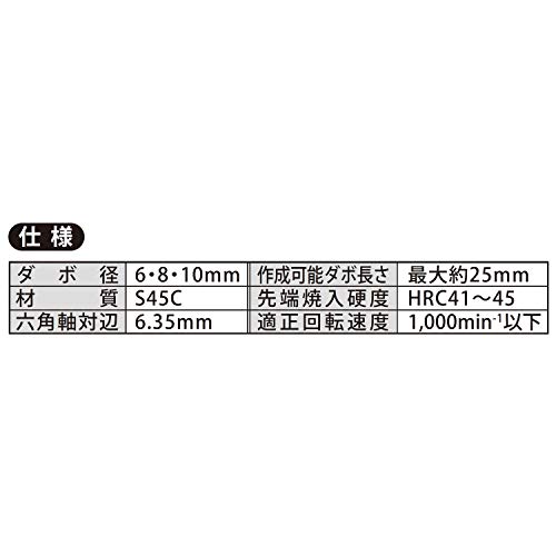 出典: https://www.amazon.co.jp/%E9%AB%98%E5%84%80-EARTH-%E6%9C%A8%E5%B7%A5%E3%83%BB%E6%A8%B9%E8%84%82%E5%85%BC%E7%94%A8-%E5%85%AD%E8%A7%92%E8%BB%B8%E3%83%89%E3%83%AA%E3%83%AB-10%E6%9C%AC%E7%B5%84/dp/B000TGIBXS/ref=sr_1_6?ie=UTF8&qid=1519198969&sr=8-6&keywords=%E3%83%89%E3%83%AA%E3%83%AB%E3%83%93%E3%83%83%E3%83%88+%E6%9C%A8%E5%B7%A5木材専用の穴あけドリルビットです。先端の形状で二つに分けられます。一つ目はネジ状で、二つ目は三角状になっているものです。長さが様々ありショートやロングなどの名称がついているものの、統一規格ではなくメーカーごとで違います。