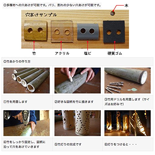 出典: https://www.amazon.co.jp/YIGIZA-%E3%82%B9%E3%83%86%E3%83%83%E3%83%97%E3%83%89%E3%83%AA%E3%83%AB-%E3%83%81%E3%82%BF%E3%83%B3%E3%82%B3%E3%83%BC%E3%83%86%E3%82%A3%E3%83%B3%E3%82%B0-%E3%82%BB%E3%83%B3%E3%82%BF%E3%83%BC%E3%83%9D%E3%83%B3%E3%83%81%E4%BB%98%E3%81%8D-%E9%89%84%E5%B7%A5%E3%83%89%E3%83%AA%E3%83%AB%E4%BB%98%E3%81%8DGW-034/dp/B071G5H4TB/ref=sr_1_1_sspa?ie=UTF8&qid=1519199638&sr=8-1-spons&keywords=%E3%82%B9%E3%83%86%E3%83%83%E3%83%97%E3%83%89%E3%83%AA%E3%83%AB+%E9%89%84%E5%B7%A5&psc=1円錐状で表面に段があり、その見た目からタケノコドリルとも呼ばれています。穴をあけることに加えて、穴の広さも調節できるドリルビットで、加工物へ深く入れこむほど穴が広がる仕組みです。金属の加工物の穴を広げたい場合によく使われます。