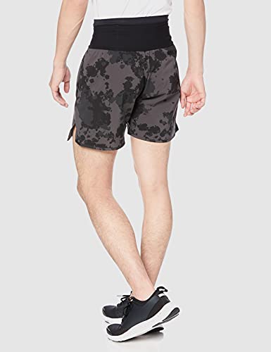 短パン×ウィンドシェルジャケットのコーディネート。青系の迷彩柄の短パンを、黒のフード付きジャケットを組み合わせ大人っぽく仕上げています。ランニング用のジャケットは、寒さ対策はもちろん、素材によっては雨もはじきます。