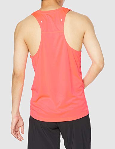 タンクトップと短パンでアクティブな印象の着こなしです。マラソンレースでも映える色使いです。