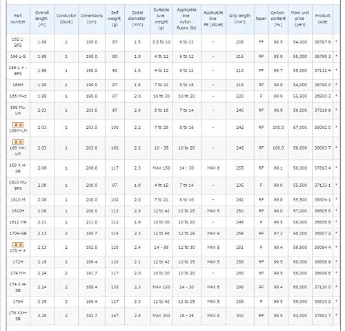 【スペック】 ・全長(m) 2.03 ・継数(本) 1 ・自重(g) 97 ・先径(mm) 2.0 ・適合ルアーウエイト(g) 5~18 ・適合ナイロンライン(lb) 7~14 ・グリップ長(mm) 240 ・テーパー RF ・カーボン含有率(%) 98.9