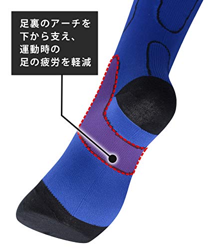 こちらはロングタイプのレギュラーソックスでひざ下全体の負担を軽減し、サポートすることができます。ロングタイプが欲しいけど5本指ソックスはちょっと...という方におすすめです。スネ周りのフィット感が丁度良く足回りの締め付けもきつくないもののしっかりフィットします。また、通気性も高く足の蒸れを感じずランニングを楽しむことができます。