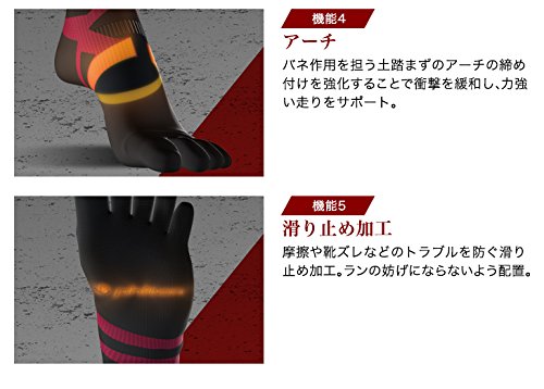 ファイテンというと様々なスポーツグッズを扱う有名ブランドであり、ソックスに関しても一流のスペックを誇っています。薄手の生地でその他と比較しても裸足に近いフィット感を持ち、さらには滑り止め、足の固定やバネの強化などアスリート仕様になっております。ランニングにパフォーマンスを求める方は是非とも購入しましょう。