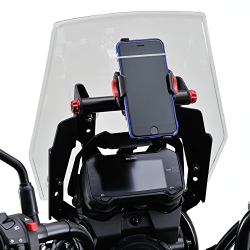 純正スクリーンを20mmと25mmと段階的に上げるブラケットです。上部のパイプはスマートフォンなどを固定するときに便利です。
