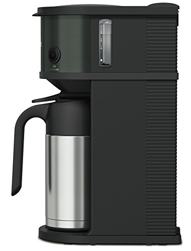 真空断熱ポットに5杯分のコーヒーが作れるコーヒーメーカー. 最初見たときには,コーヒー豆と水のスペースが繋がっていて不安でしたが,使ってみると不安が無くなりました. 前面のスイッチが便利で,OFF ではなく AUTO OFF と書いてある処が気が利いてます. ポットがしっかりロックされるため,抜き差しを両手で行う必要がある事が気になりましたが,慣れで補えるレベルです. 広口のポットは氷が入れやすいので,洗うのに便利だし,アイスコーヒー用途にも良さそうです.