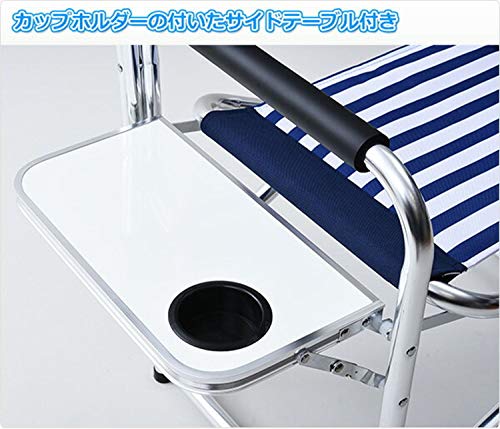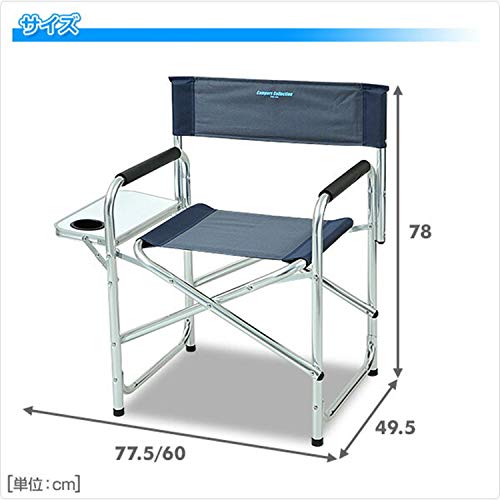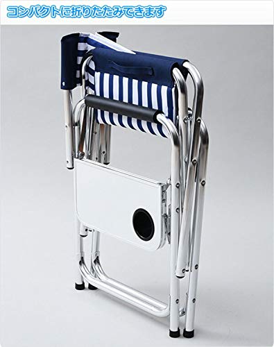 ネイビーとホワイトのストライプがおしゃれなこちらのディレクターズチェアは、軽くて丈夫なアルミフレーム。本体重量も約2.5キロと超軽量。サイドにはドリンクホルダーとミニテーブルが付いており、キャンプやバーベキューなどのアウトドアで活躍すること間違いなしです。座面の高さはおよそ46センチとハイタイプです。坐り心地も良く、これだけの機能が付いてお値段も5,000円以下と、コスパ最強です。持ち運びに便利な持ち手も付いています。