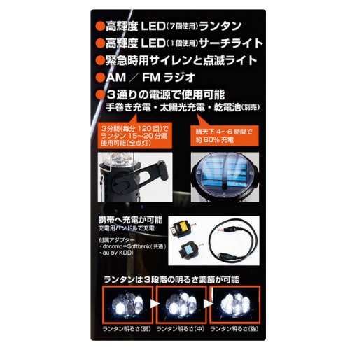 ランタン型ダイナモ・ソーラーランプは、キャンプや登山といったアウトドアのシーンでの利用はもちろん、緊急災害時での利用にも適した製品です。ラジオ機能が付いており、災害時に明るい光と情報を提供してくれます。