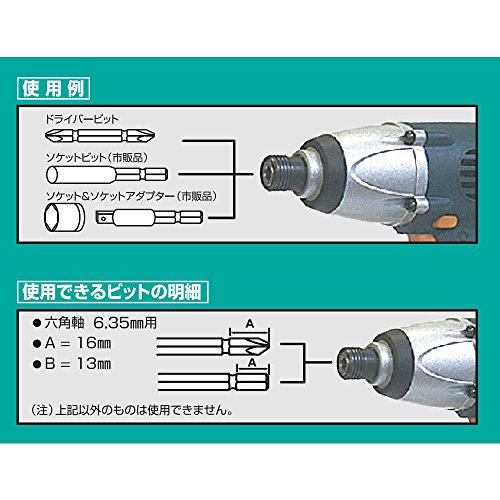サイズ:183×60×236mm 最大締付トルク:(高速)130N・m (低速)75N・m 電池パック:12V、1,300mAh、ニカド 充電時間:30分 質量:1.6kg 付属品:+ドライバビット(No.2×65mm)、キャリングケース、電池パック B-1203M1(2個)、充電器 BC-1205