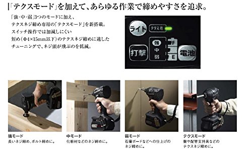 そんな小型でプロ向けの大手メーカーが作るこのインパクトには4つの締付モードが用意されています。強・中・小とテクスモードの計4種類で、状況に応じて使い分けが可能です。初心者はもちろん、プロが使えばとても高い能力を発揮します。ランキング1位のマキタは6つのモードでしたが、モードが少ないことで初心者は選択肢が少なくなり使いやすくなります。メーカーのネームバリューに品質や小型さを求める選び方をされる初心者やプロにおすすめです。