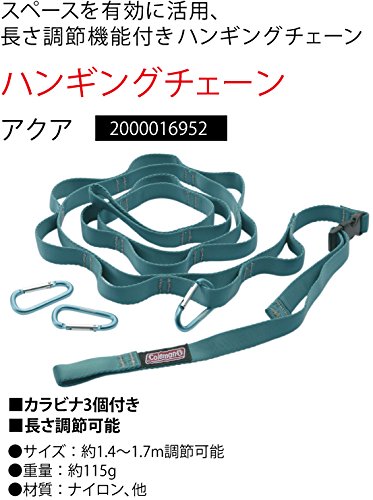 厚い生地で丈夫なつくりのハンギングチェーンです。アジャスター付きで140cm~170cm。 長さが足りなければ2本を連結させてもOK。ハンギングチェーンとおそろいの色のカラビナも3個ついています。