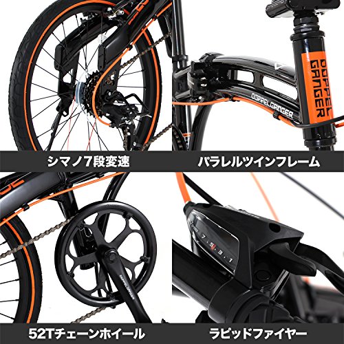 【送料無料】DOPPELGANGER(ドッペルギャンガー) Blackmax シリーズ 20インチ 折りたたみ自転車 シマノ7段変速 アルミフレーム ミニベロ ブラックxオレンジ 2018年モデル 202-S-DP