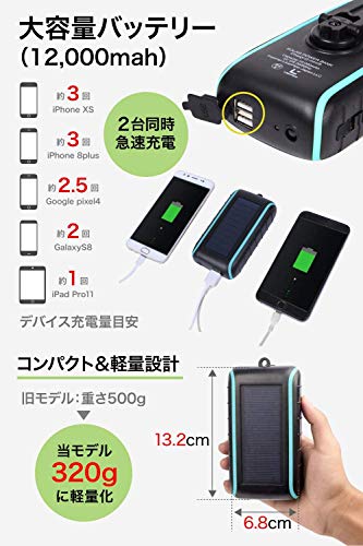 CXYP 手回し充電器 12000mAh 大容量 ソーラーチャージャー