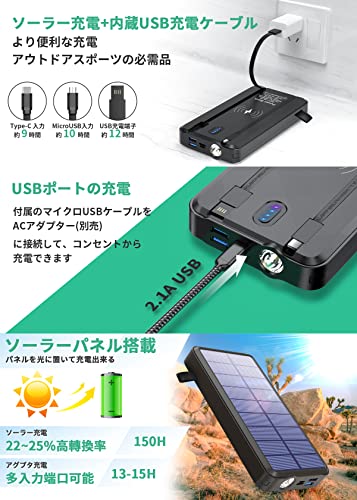 モバイルバッテリー 4ケーブル内蔵 ソーラーチャージャー