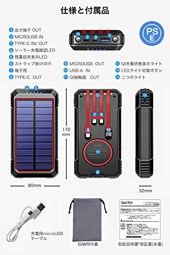 DeliTooソーラーモバイルバッテリー 40800mAh