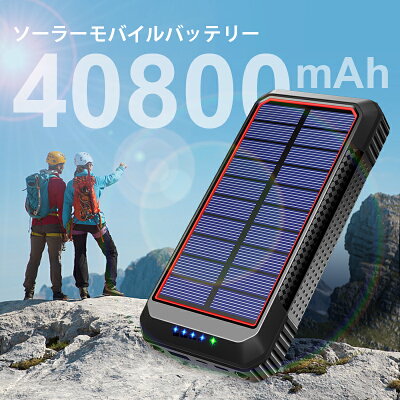 ソーラーパネルに太陽光を当てることで本体内部に蓄電できる、便利なソーラーモバイルバッテリーです。40800mAhという、圧倒的な大容量の商品になります。