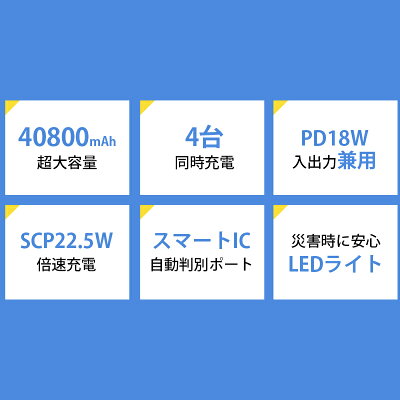 懐中電灯として使える高輝度なLEDライトも搭載しているので、非常時の備えとして一台持っておくと安心なモバイルバッテリーです。