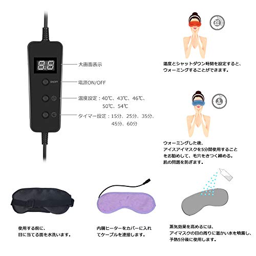 四段階の温度調節機能のタイマーコントロールが搭載されていますので自分好みの時間や温度を設定することができます。内蔵されているヒーターによって目元が効果的に温められますので、長時間の事務作業やPC作業による目の疲労感を和らげてくれる効果がありますのでおすすめです。素材には綿や合成皮革が使用されていて肌触り良く洗濯する事も可能ですので衛生的に長く愛用していく事が出来ます!